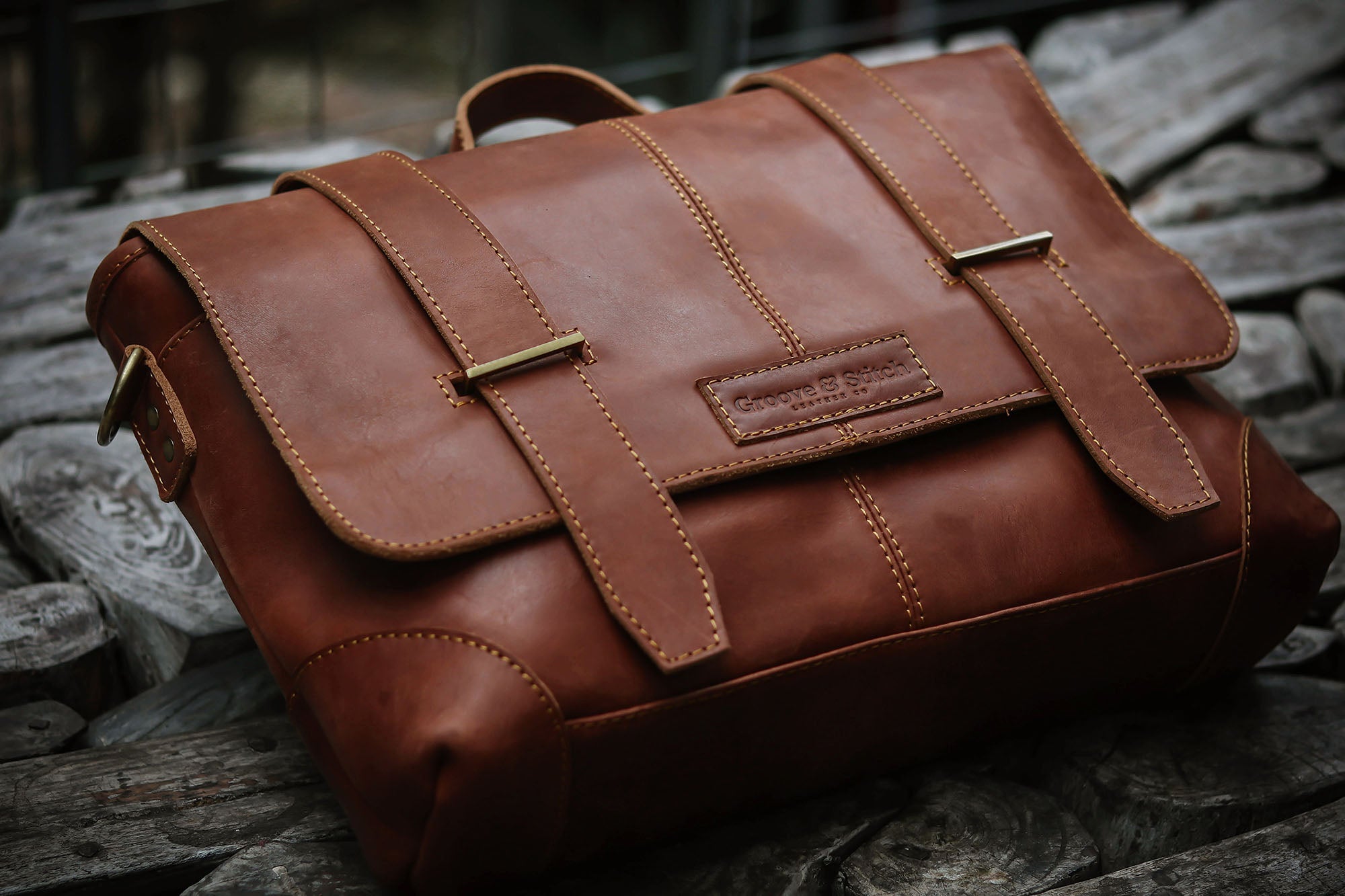 Each Groove and Stitch product is skillfully hand-crafted of authentic full-grain leather that has been carefully selected for its strength and exclusive variations. Only authentic full-grain leather has the unique natural irregularities that create the beautiful, one-of-a-kind look that this striking leather is famous for. Each product boasts rugged YKK zippers (if any) and meticulous stitching. Luxurious embossed leather and brass accessories give each product a chic vintage look.